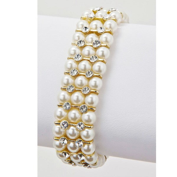 Harmony Rhinestone Faux Pearl Stretch Bracelet