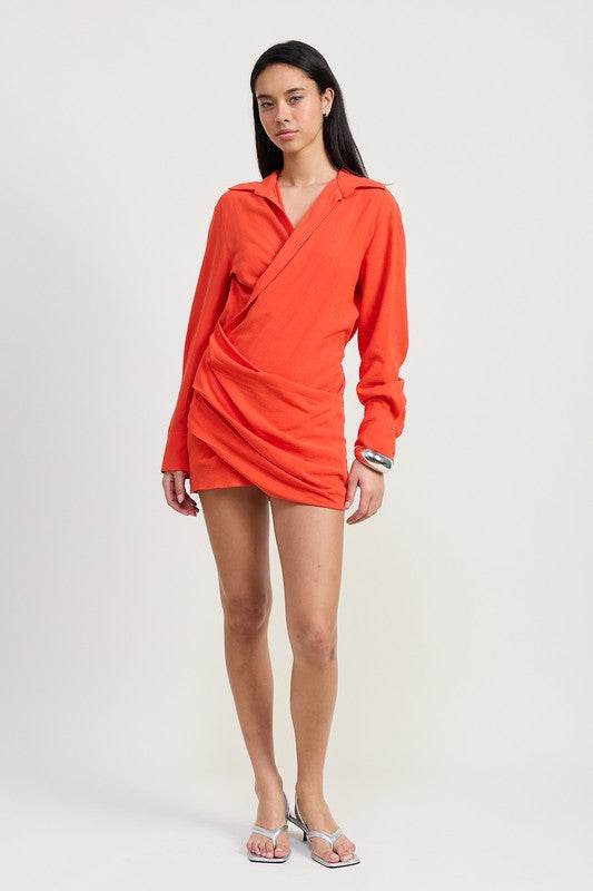 فستان MNI ملفوف بأكمام طويلة وياقة