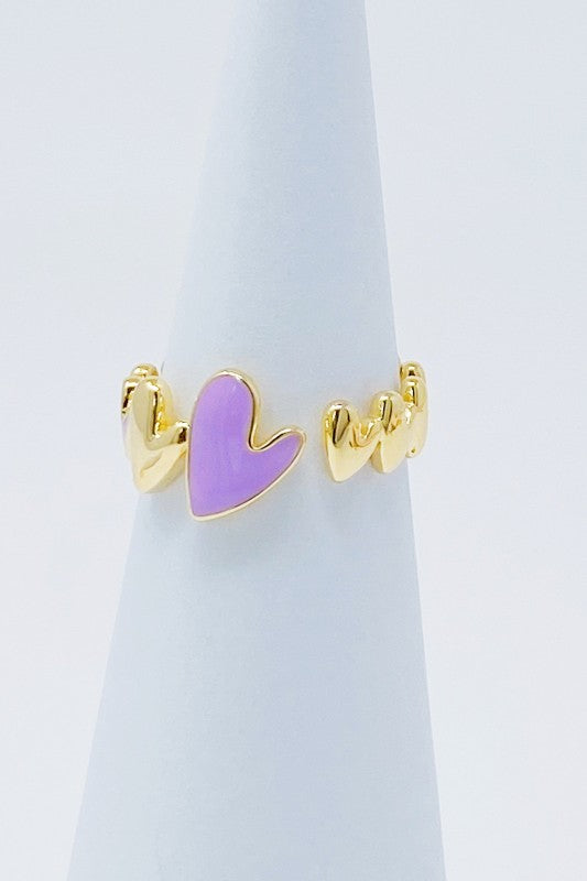 Small heart together with oil drop accent color. An opening between hearts looks stylish and makes it fit easy!