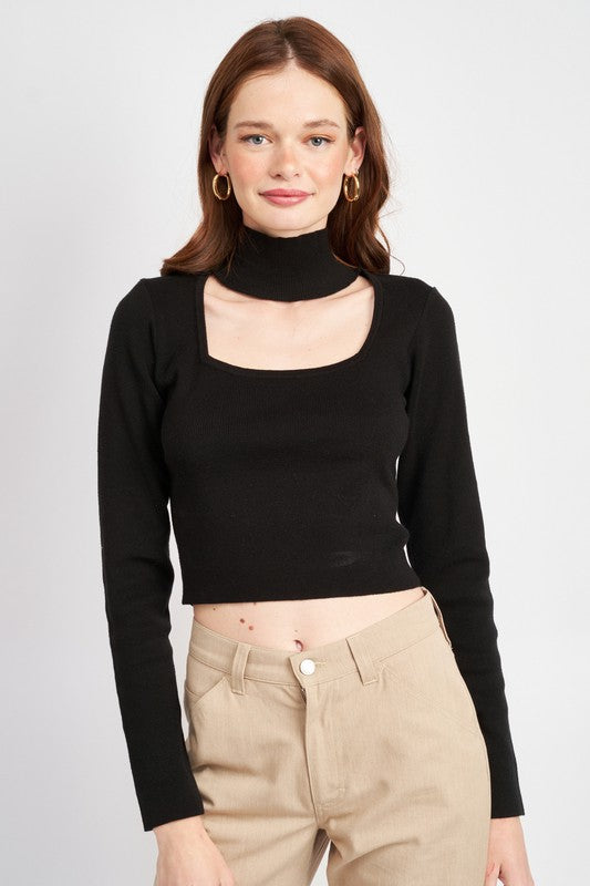 TURTLE NECK CROP TOP WTIH CUT OUT