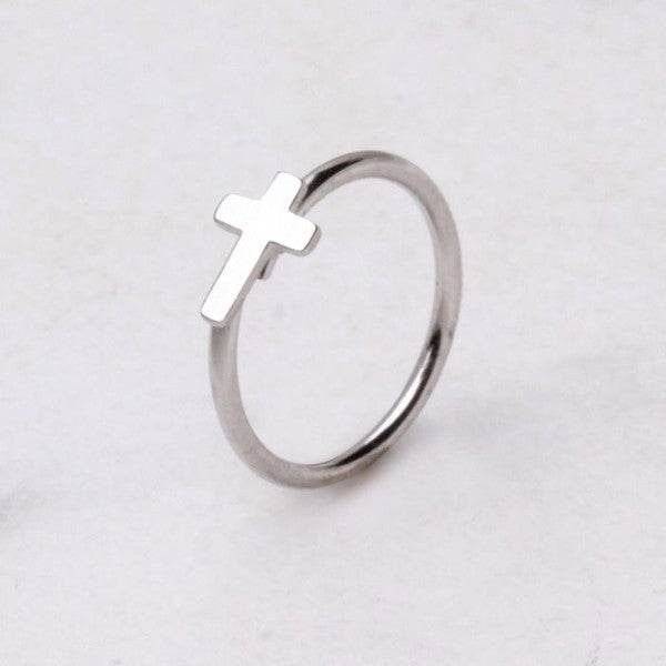 Aro nasal de acero quirúrgico 316L recocido con forma de cruz. Luce un aro nasal y dale un toque de distinción con una decoración delicada. Fabricado en acero quirúrgico 316L de la más alta calidad, este clásico aro nasal presenta un encantador motivo de cruz en metal pulido, de una elegancia sencilla. Disponible en un diseño recocido fácilmente ajustable para un uso cómodo.