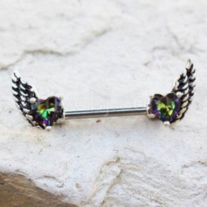 Piercing para pezón de acero quirúrgico 316L con forma de corazón alado gótico