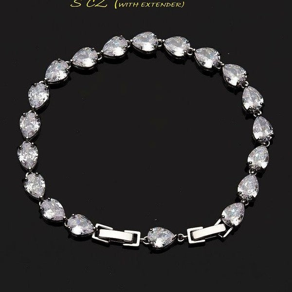 Pulsera de novia con circonitas cúbicas en forma de pera.