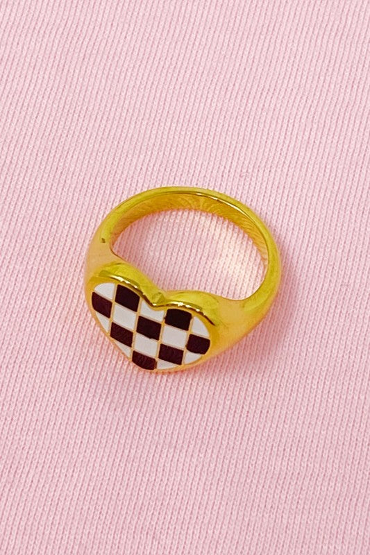 The perfect statement ring! This heart shaped ring is beautifully detailed with a checkerboard design. It has a nice smooth polished finish giving it a exclusive look!