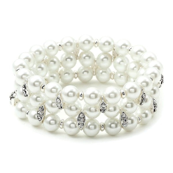Pulsera elástica de 3 hilos con perlas y detalles de cristal.