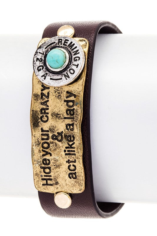 Engraved Bullet Leather Boho Bracelet