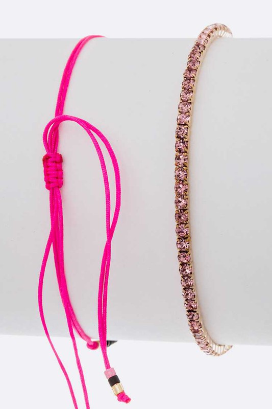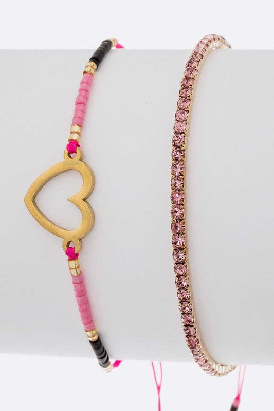 Heart Charm Rhinestone 2 In 1 Bracelet Set