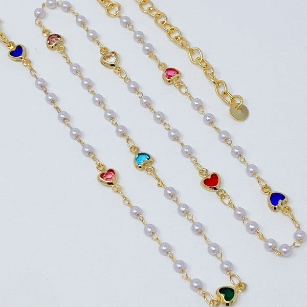 This Precious Mini Heart Pearl Chain Necklace is the perfect blend of modern and classic. It features delightful tiny hearts spaced out nicely around a pearl chain, creating a look that is both dainty and bold. With its cheerful and timeless design, you can wear it alone or layer it with other jewelry for a custom look.
