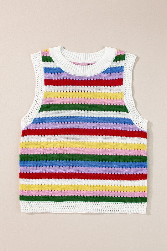 Women Striped Knitted Eyelet Slim Sweater Vest