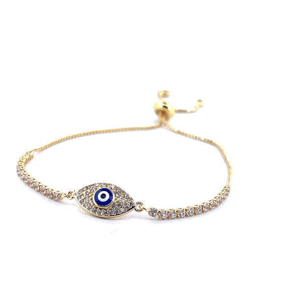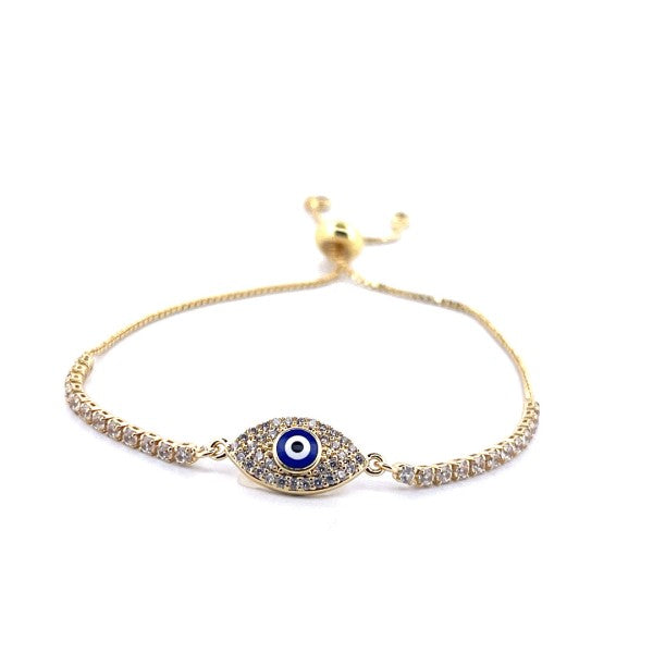 18K Gold Plated Evil Eye Tennis Bracelet with Blue
