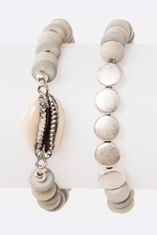 2 In 1 Sea Shell Wooden Beads Stretch Bracelet