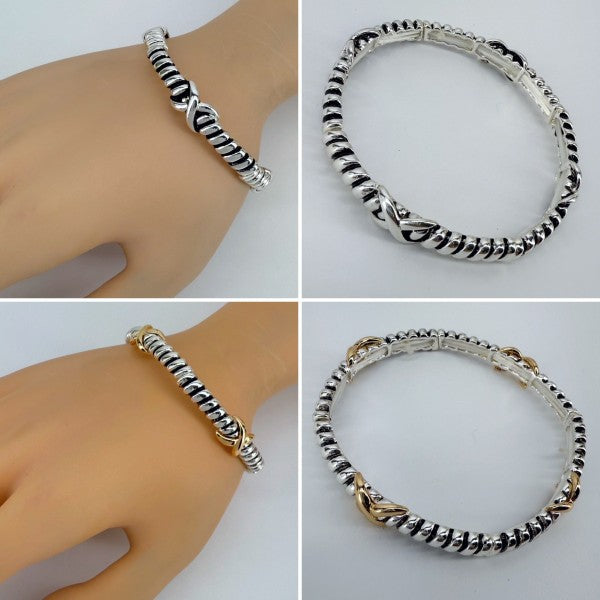 Discover the elegance of this designer-inspired stretchable thin bracelet, offered in a stylish two-tone or classic silver finish to complement any outfit.