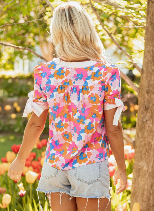 Aleia Floral Knotted Short Sleeve Blouse