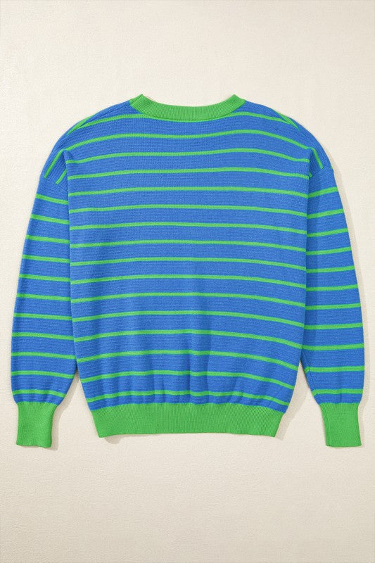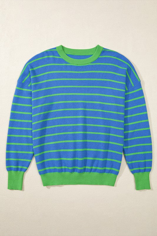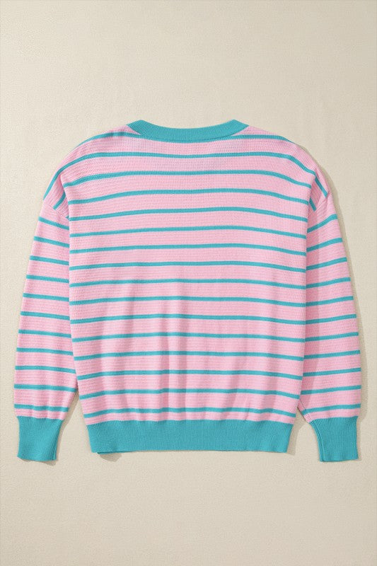 Briar Stripe Trimmed Round Neck Loose Sweater