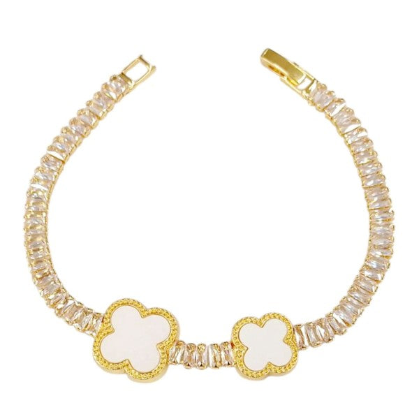 - Elegant clover and rectangle cubic zirconia stones adorn this stunning foldover tennis bracelet, perfect for adding a touch of sophistication to your wrist.