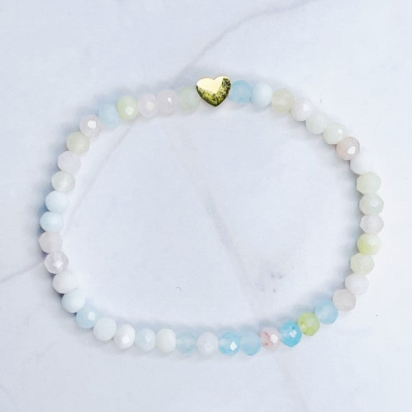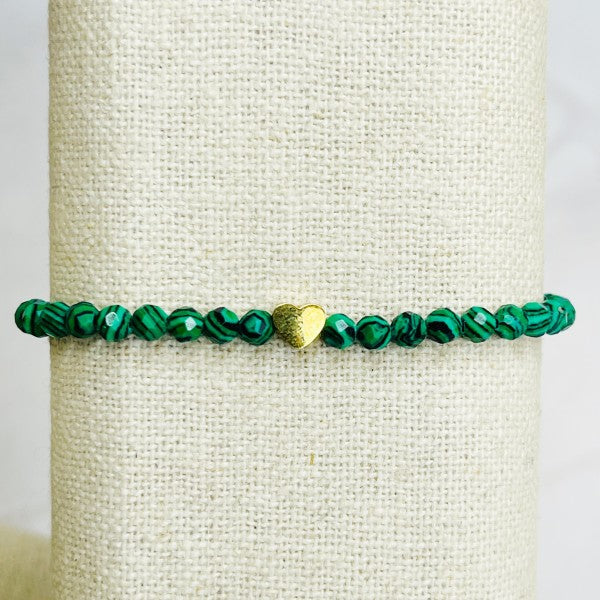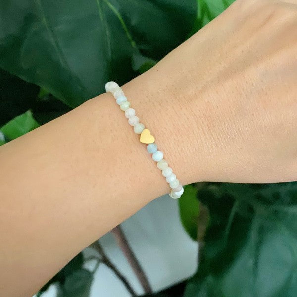 This Lovely Stone Beads Stretch Bracelet is the perfect accessory to brighten up your look. Made with natural stone beads and a golden small heart bead, this bracelet is sure to add a touch of style to your wardrobe. Wear alone or layer with other bracelets for a unique touch. Enjoy a lovely vibe everyday with this beautiful bracelet.