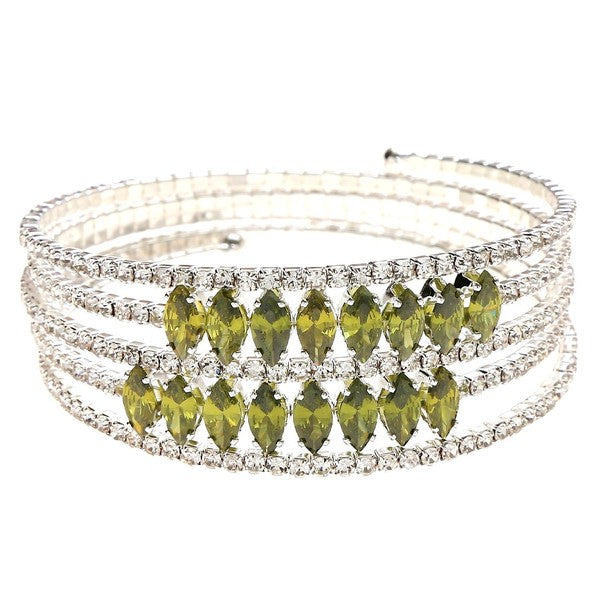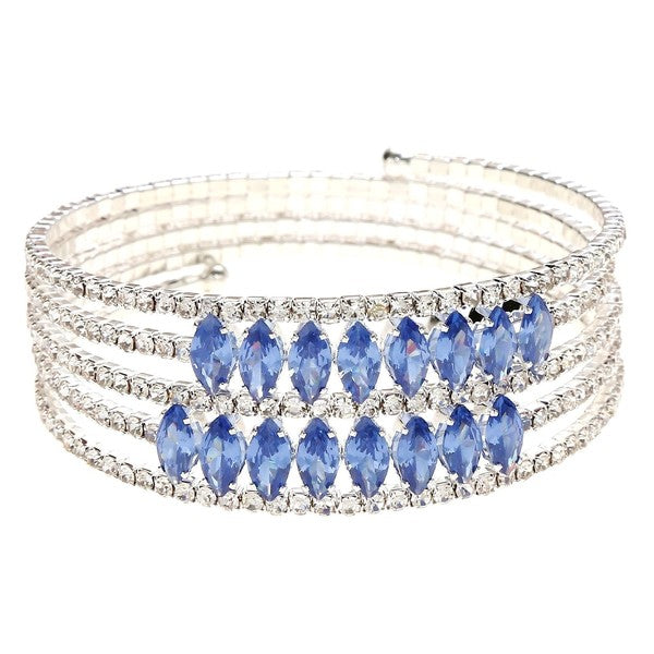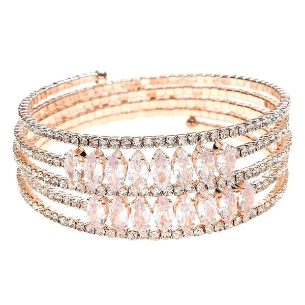 - Elevate your look with this exquisite Marquise Oval Lines Rhinestone Spring Wrap Bracelet, perfect for cocktails and evenings out.