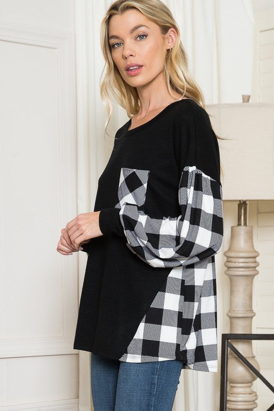 Plaid Contrast Bell Sleeve Sweater Knit