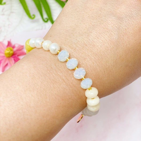 This Semi-Precious Bauble Stretch Bracelet offers a unique combination of natural stones, beads and freshwater pearls. Easy on/off stretch bracelet. You'll be able to enjoy the beauty and energy of the colors together. Plus, it is finished with a golden Ellison + Young logo tag.