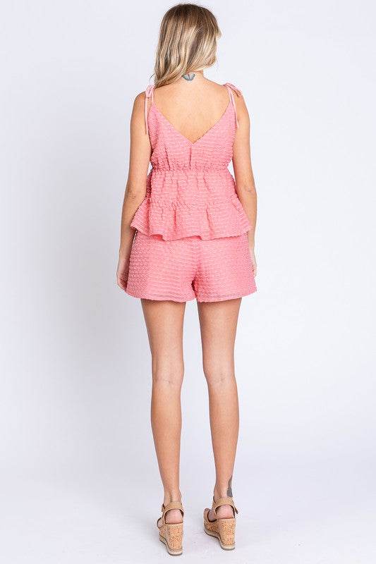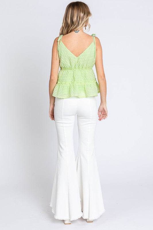 regular size, standard, young contemporary, textured, bralette, cami, top, bra top, tank top, tiered, self-tie, adjustable strap, shoulder strap, sleeveless, sweetheart neck, low back, ruffle trim, lining, cute, chic, stylish, fashionable, trendy, comfortable, daily wear, spring, summer, ss, women's clothing, women's apparel, women's wear