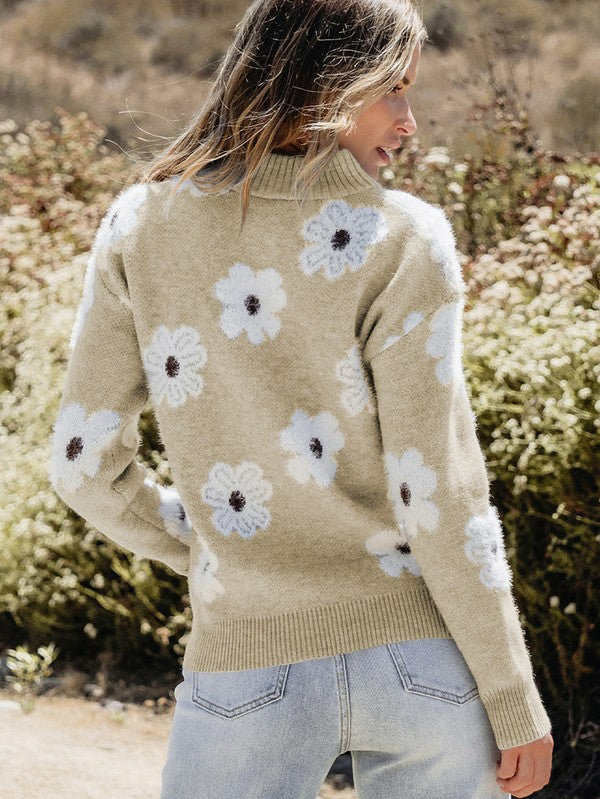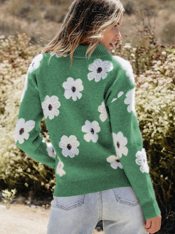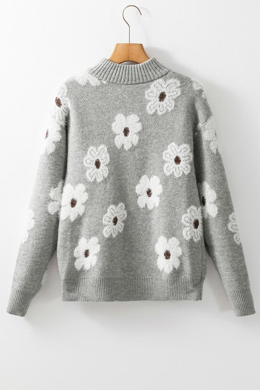 Stylish floral pattern adds a pop of color to this trendy sweater.